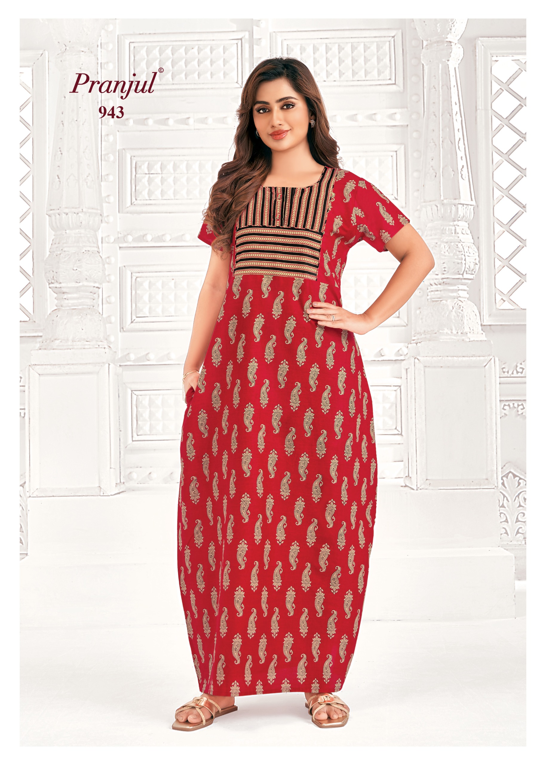 Pranjul nighties are?typically made from?pure, soft cotton?and are designed for comfort during sleep and casual wear. Common features include a?printed pattern, a?round neck, and half sleeves. Many models include a?side pocket?(sometimes with a specific compartment for a mobile phone) and have a full overlock stitching finish for durability.