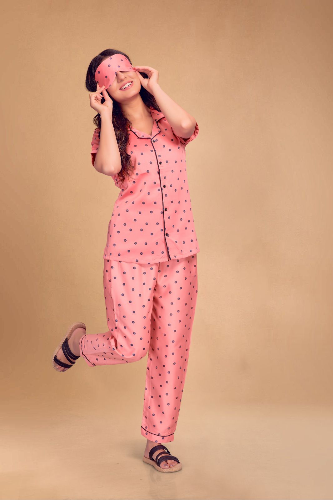 Satin night suit with eye mask